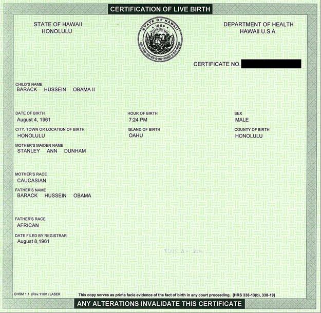 certificate is that Mr. Obama’s father was