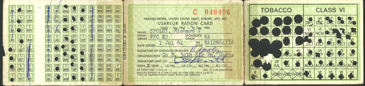 Cigarettes, Coffee, Whiskey, PX the very valuable ration card