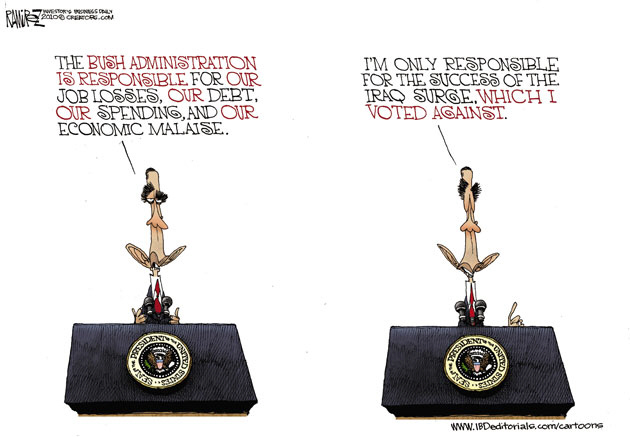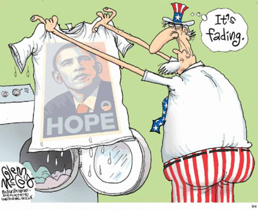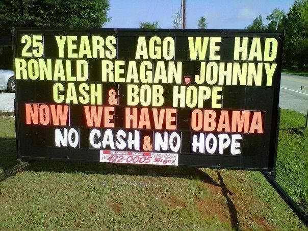 obama is the shepherd I did not want. He leadeth me beside the still factories. |