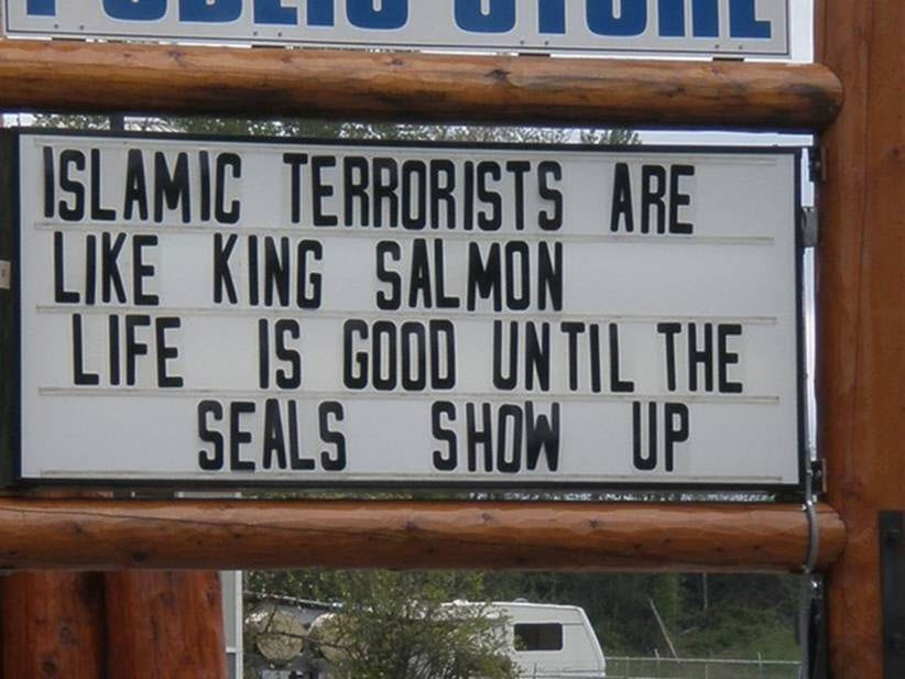 ![]() This picture captured on the back of a Marine's jeep is priceless and definitely a "sender"! |