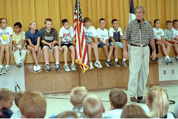 photos say it all Self explanatory: Just look at the paraphernalia that his "aides" have to carry into a school in order for him to speak to school kids. Unbelievable! I think these 2 pictures make some kind of statement!!!!!!!!!! Here is what Obama needs set up to talk to a few school children. Not much room for kids. Still needs to have the Teleprompters. The secret service guy in back keeps eyes out for any terrorist-type-8-year-olds with tea partying parents. His I.Q. gives him away!!! |